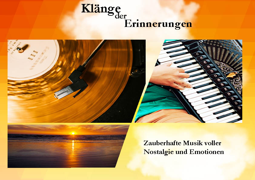 Dieses Programm „Klänge der Erinnerungen“ nutzt die Kraft der Musik um Träume und Emotionen zu wecken. Dieses Programm ist speziell für ältere Menschen entwickelt. Oftmals werden schon bei den ersten Tönen Erinnerungen wach und die unvergessenen Texte und Melodien werden einfach mitgesungen. Es funktioniert ganz einfach: Sie laden Ihre Gäste ein-den Rest übernehme ich mit meinem „Sorglospaket“ inclusive Texte, Beschallung und Lichtdesign. In einer einzigartigen Kombination aus Musik und Gesang, Bildern und Filmen werden die schönsten Melodien vergangener Zeiten in ca 90 Minuten lebendig. Als „wandelndes Liederbuch“ erfülle ich auch gerne individuelle Sonderwünsche und lasse diese spontan und ohne Noten erklingen. Das Akkordeon verleiht den Melodien einen warmen und einladenden Klang. Texte sind vorbereitet, damit jeder die Gelegenheit hat, mitzusingen und aktiv an diesem musikalischen Erlebnis teilzunehmen.